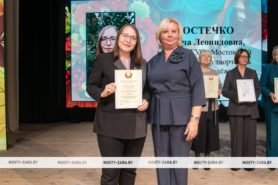 Активная гражданская позиция, инициативность и неравнодушие заместителя начальника управления образования райисполкома Инны Болтрукевич и директора Мостовского районного центра творчества детей и молодёжи Натальи Радкевич отмечены Почётными грамотами Гродненского областного отделения Белорусской партии «Белая Русь».