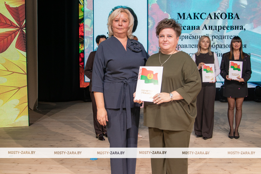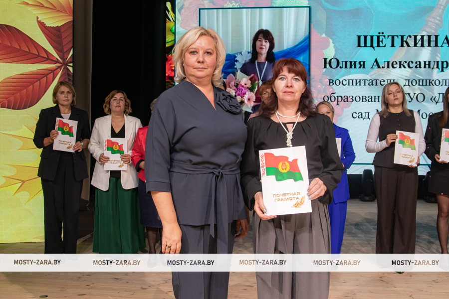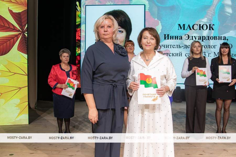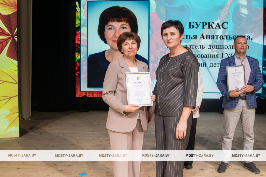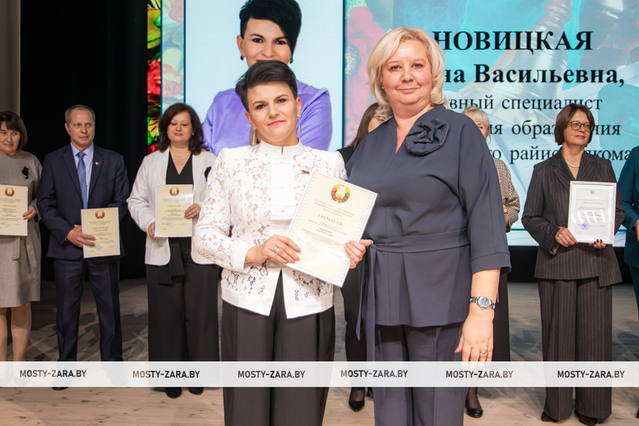 Грамоты главного управления облисполкома удостоены директор ЦКРОиР Светлана Берёзова, заместитель директора Дубненской средней школы имени А. С. Данилова Таисия Бутенко, учитель начальных классов Песковской средней школы Регина Величко, заместитель директора средней школы №3 Елена Коцко, главный специалист управления образования Инна Новицкая, директор СПЦ Мостовского района Елена Фёдорова.
