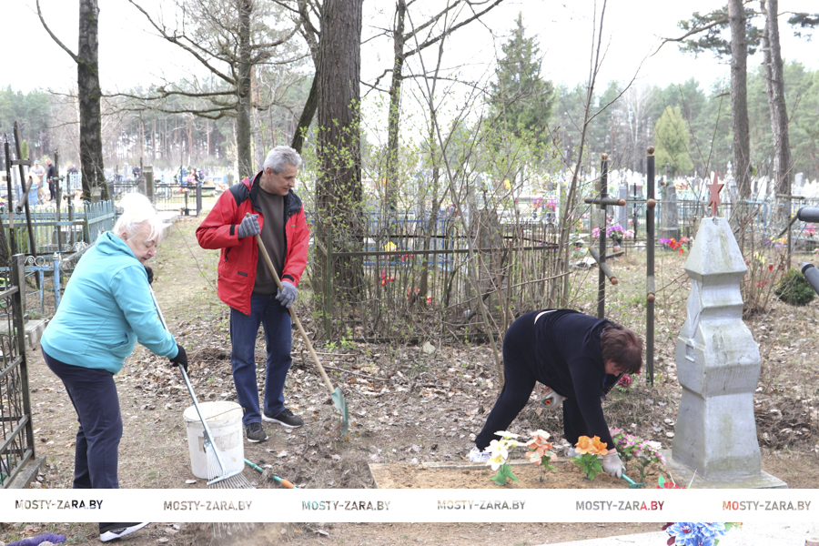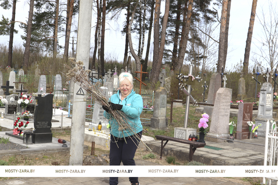 – Одна из важнейших целей республиканского субботника – приведение в надлежащее содержание мест боевой и воинской славы, захоронений воинов, партизан и мирных жителей Великой Отечественной войны,– сказала Ирина Евгеньевна.– Наводить порядок на могилах героев – это ещё раз подтверждать, что их подвиг не забыт. Это наш общий долг и знак благодарности, который не имеет срока давности. В первую очередь посетили на городском кладбище братскую могилу воинов и партизан, погибших при освобождении Мостов. Недалеко ещё две безвестные могилы со звездами. Уборка листвы, иглицы и шишек, опавших веток и пожухлой травы – дело спорится, когда работаешь дружным коллективом.