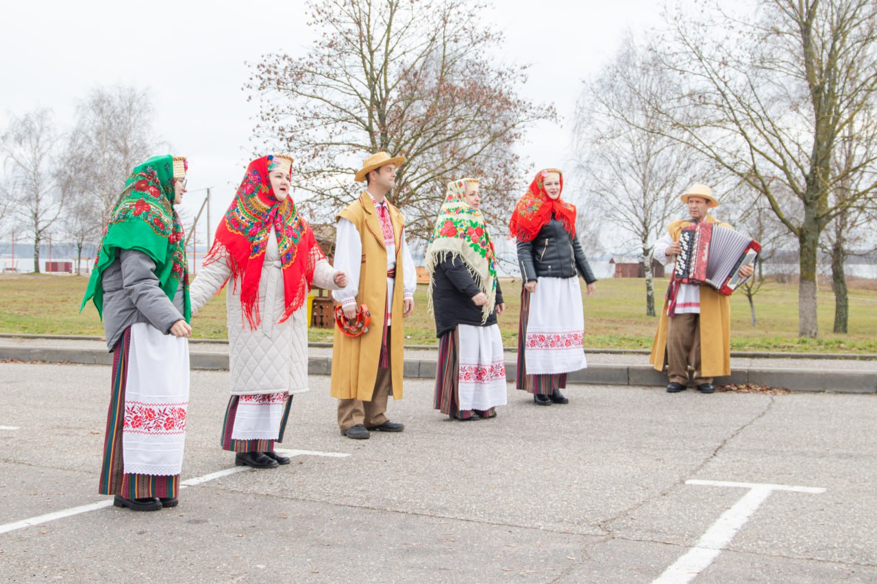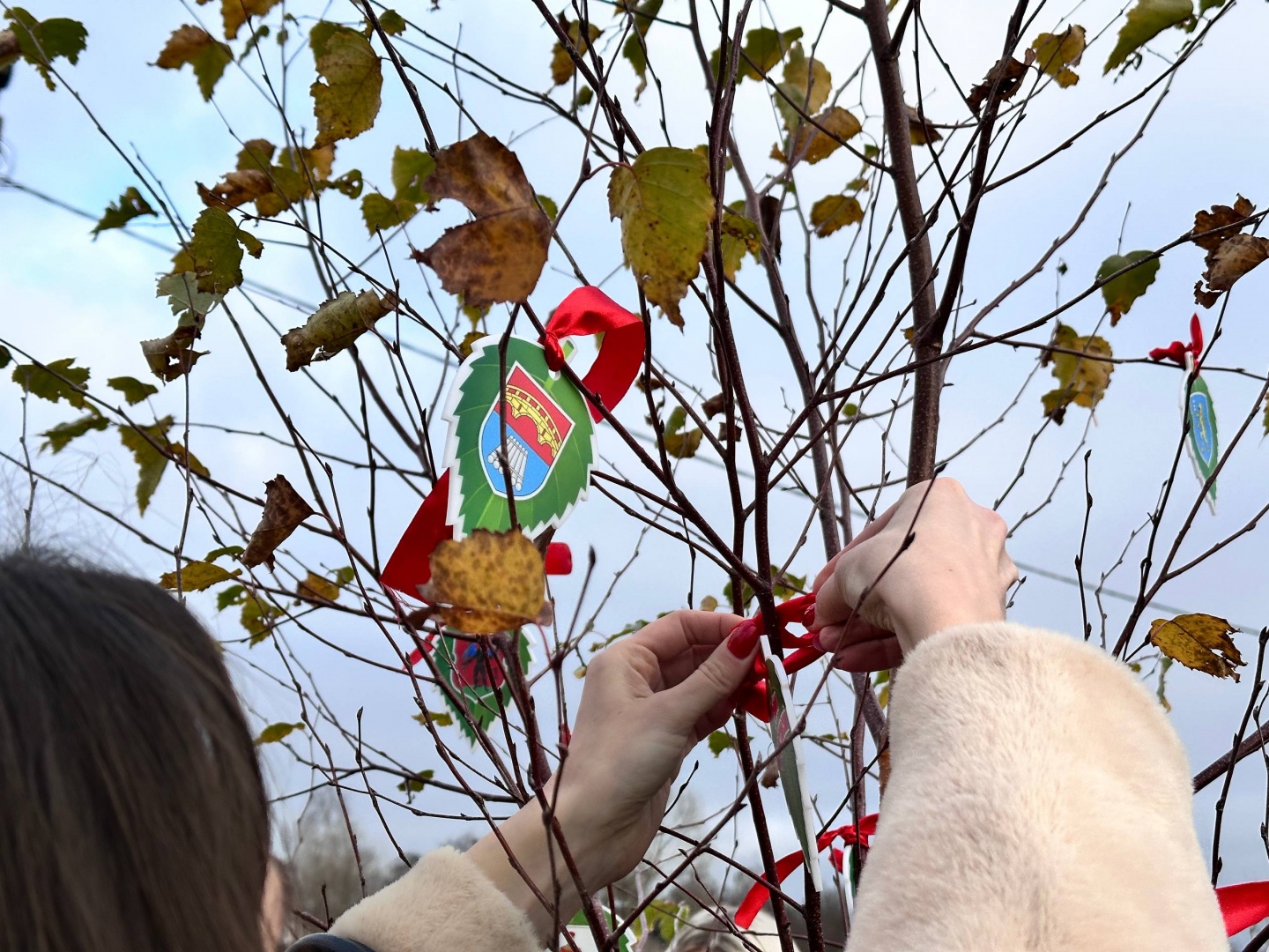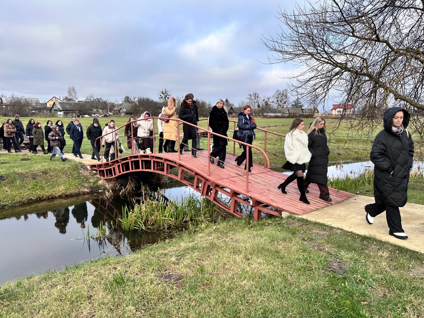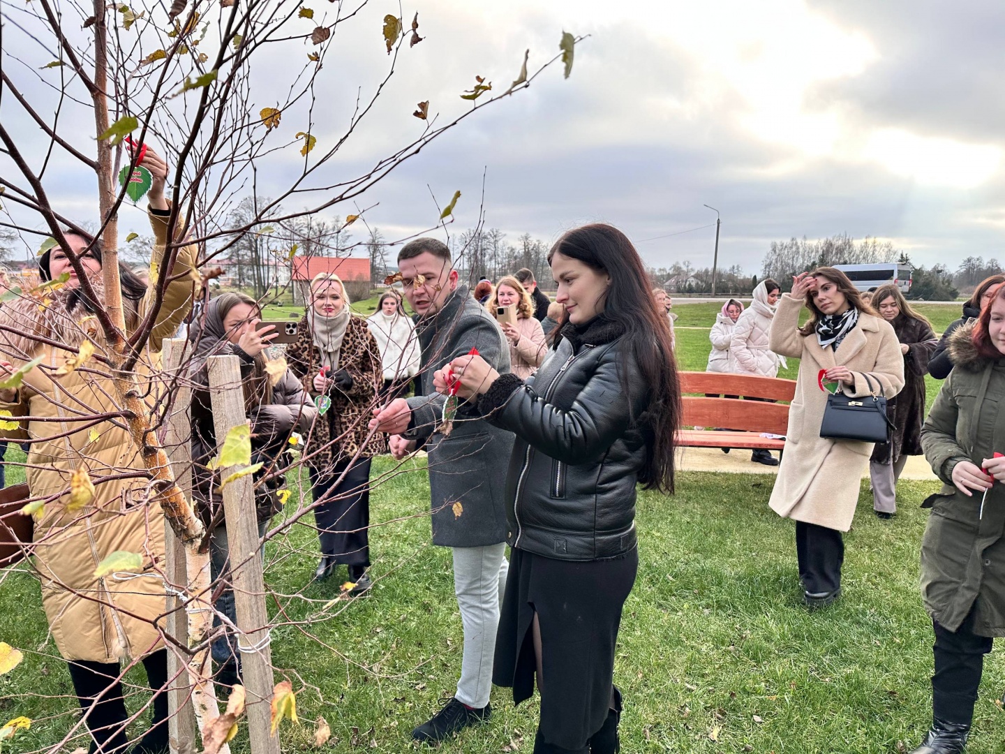 Прогулялись по парку, который соорудили работники сельхозорганизации, и обновили «листву» на берёзке – повесили листья с гербами районов Гродненщины.