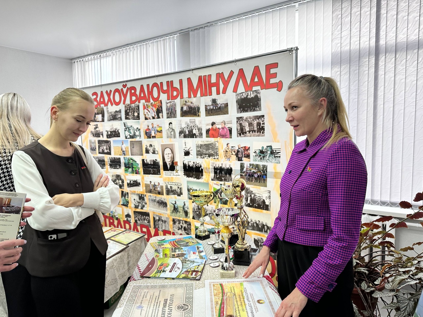 Небольшая выставка достижений района едва уместилась в фойе второго этажа админздания КСУП «Голынка».