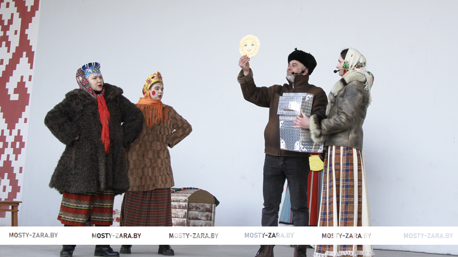 Звучала музыка, народ развлекали скоморохи и персонажи народных сказок: Мачеха, Настенька, Морозко и другие в исполнении мостовских артистов. Персонажи народной сказки в их исполнении получились очень убедительными и привлекательными, зрители аплодировали поучительной истории о том, как доброта и трудолюбие непременно вознаграждаются по заслугам