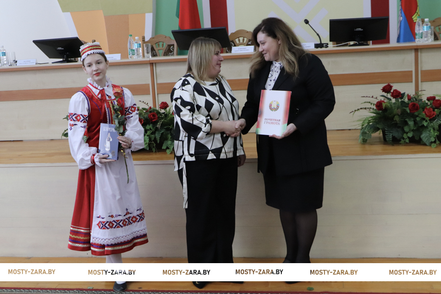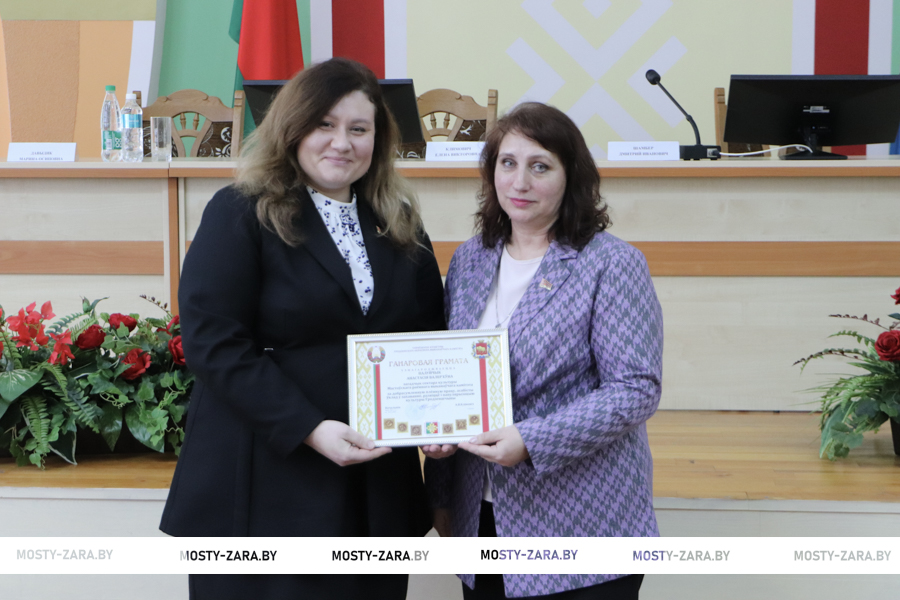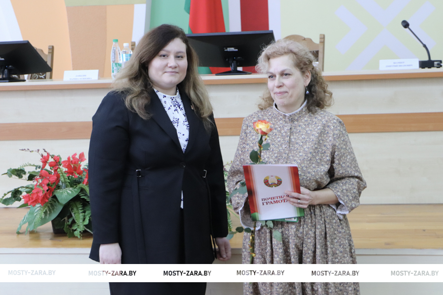 Почётные грамоты Мостовского районного Совета депутатов получили заведующий филиалом «Гудевичская сельская библиотека» Валентина Пронько, учитель по классу баяна ДШИ Валентина Лукашук, Благодарственные письма районного Совета депутатов – заведующий сектором нестационарного обслуживания населения РЦК Елена Савко и заведующий филиалом «Милевичский ЦДиК» Инна Машкало.