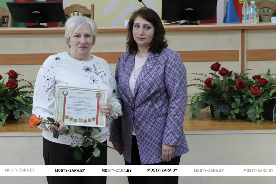 Почётной грамоты Мостовского райисполкома удостоены библиотекарь Мостовской районной библиотеки Ольга Левчик и заведующий филиалом «Гудевичский центр досуга и культуры» Антонина Черник. Благодарность председателя райисполкома объявлена учителю по классу аккордеона Мостовской ДШИ Елене Савко.
