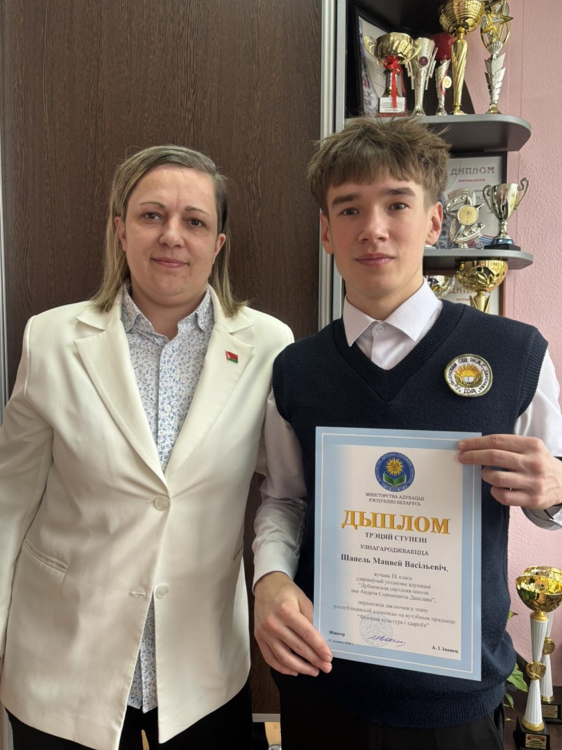 З 23 па 27 сакавіка ў Гомелі адбыўся заключны этап рэспубліканскай алімпіяды па вучэбным прадмеце “Фізічная культура і здароўе”. Па выніках спаборніцтваў Матвей Шапель, навучэнец Дубненскай сярэдняй школы імя А. С. Данілава, увайшоў у лік пераможцаў, заваяваўшы дыплом 3 ступені.