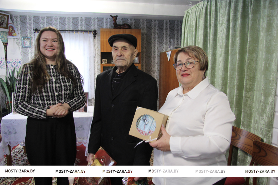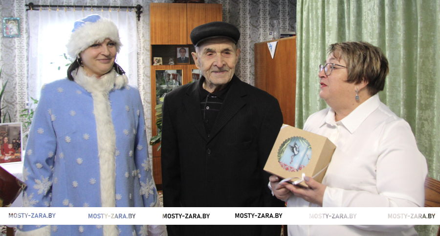 И какой же праздник без подарков? Их вручили гости почётному жителю Мостовщины Николаю Бобко под музыкальное поздравление Деда Мороза и Снегурочки из сектора нестационарного обслуживания населения Мостовского районного центра культуры.