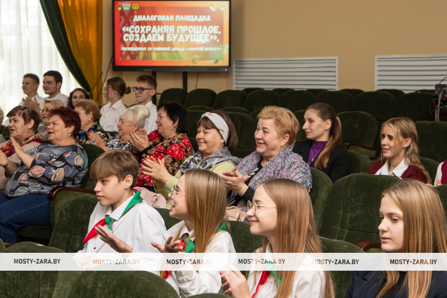 В стороне не остались и другие творческие деятели: разработку сценария и проведение диалоговой площадки взяли на себя специалисты Мостовского ЦТДиМ, а свои вопросы для гостей готовили члены Молодёжного парламента и БРПО. По итогу в доме творчества детей и молодёжи собрали микс молодости и опыта: в зрительном зале присутствовали как представители «золотого возраста», так и ученики с рабочей молодёжью. Со сцены же историями и воспоминаниями делились люди, чьи активность, мудрость и знания за долгие годы жизни только приумножились. Речь идёт об Ирине Серебровской, Александре Глазкове, Татьяне Жвирбля и Георгии Коробко.
