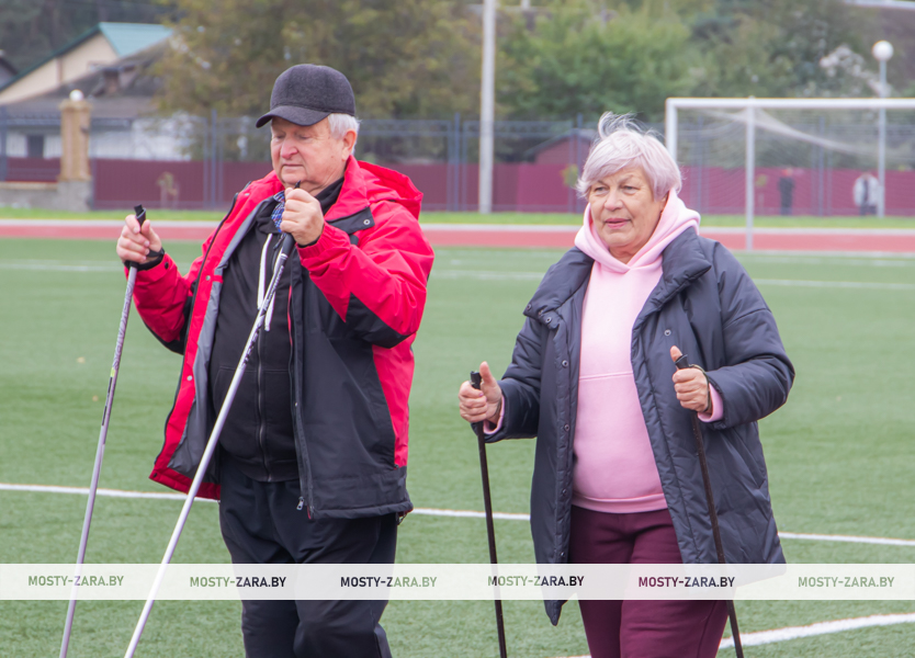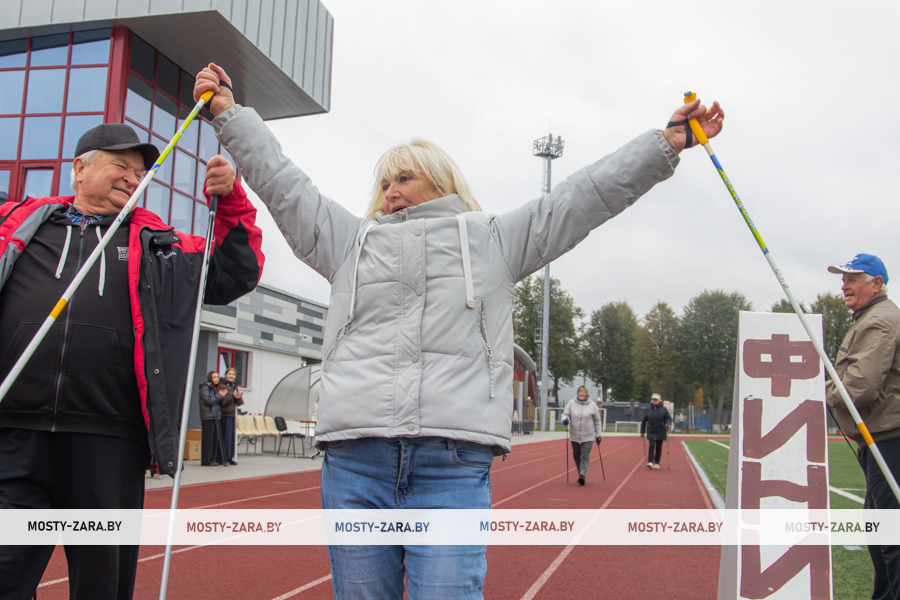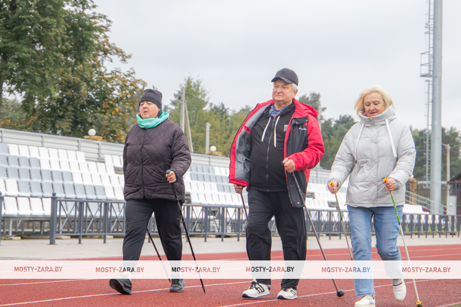 Подтянутые, спортивные и жизнерадостные ‒ это не мостовские атлеты, а наши люди «золотого возраста», которые собрались в последний день сентября на стадионе «Неман» на марафоне по скандинавской ходьбе.